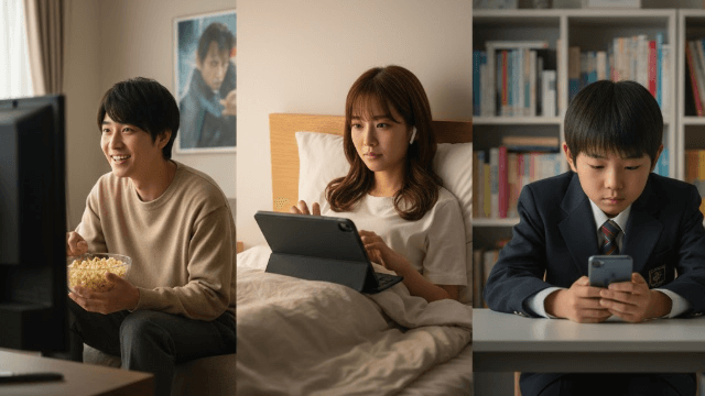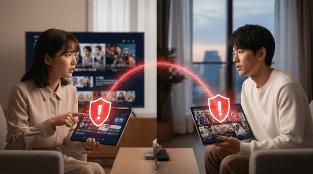 このルールを具体的なシナリオで考えてみましょう。例えば、ある家庭でお父さんがリビングのテレビで映画Aを、お母さんが自室のタブレットで韓国ドラマBを、そして子どもが自分のスマートフォンでアニメCを同時に観ている、という状況は可能です(3台のデバイスで3つの異なる作品を視聴)。