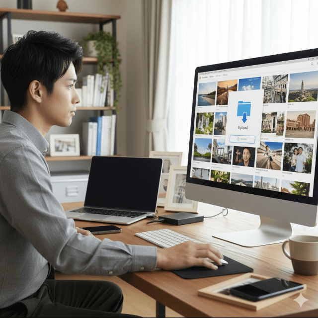 すでにパソコンのハードディスクに大量の写真を保存している場合でも、Amazonフォトにバックアップすることが可能です。主な方法は2つあります。