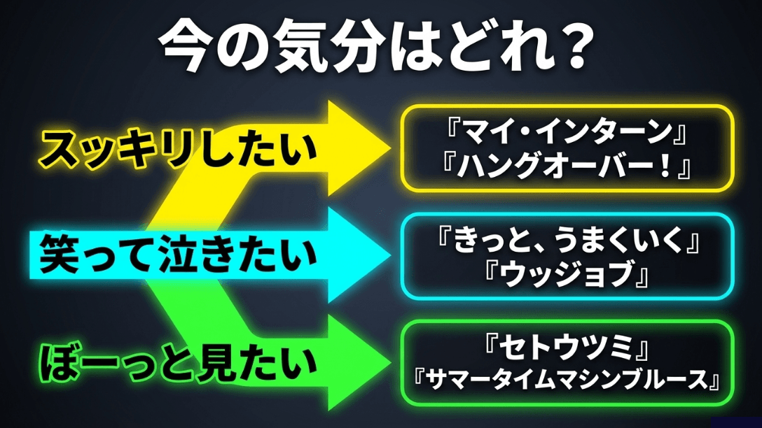 ここでは、シチュエーションに応じた「外さない」選び方を深掘りしていきます。今のあなたの気分はどれに当てはまりますか?