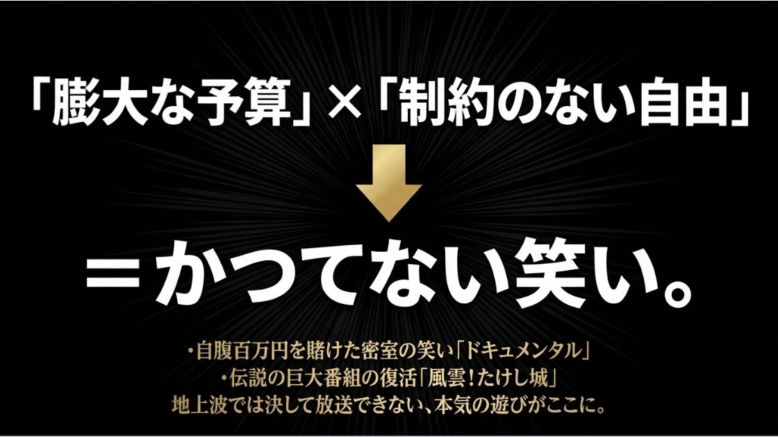 伝説の番組を復活させた『風雲!たけし城』なども含め、Amazonが投じる莫大な制作予算が、日本のエンターテインメントの底上げに寄与しているのは間違いありません。