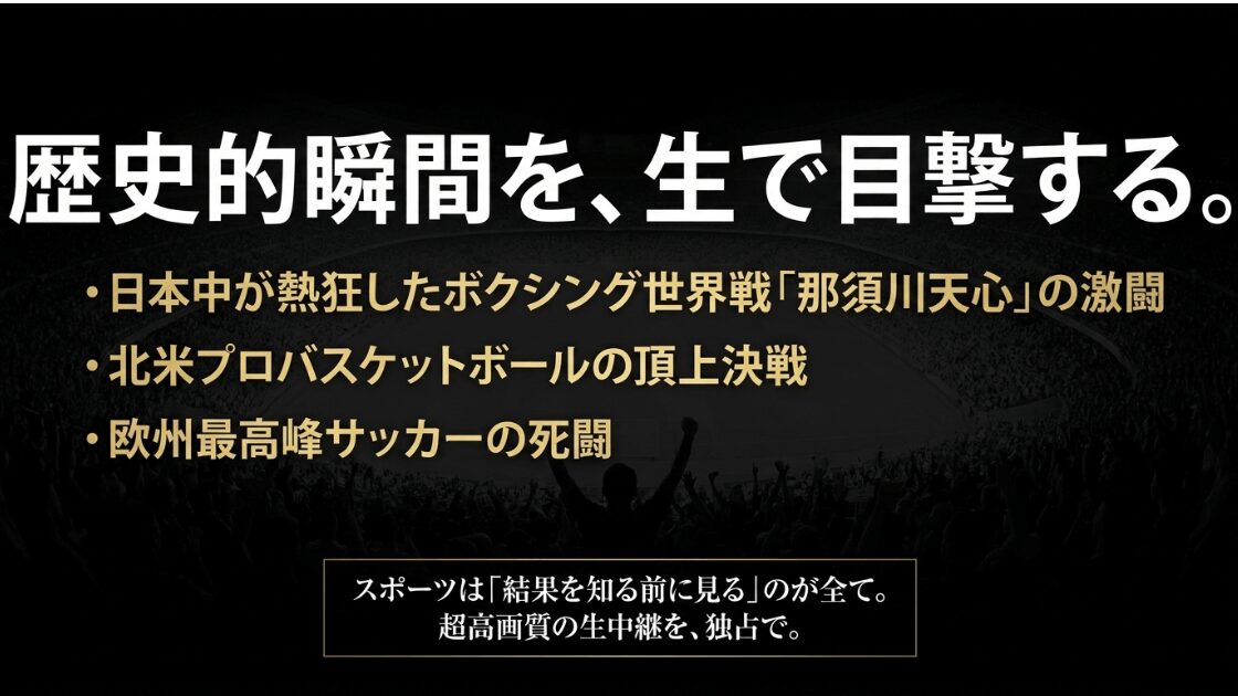- ボクシングやNBAなどライブ配信でしか味わえないリアルタイムの価値