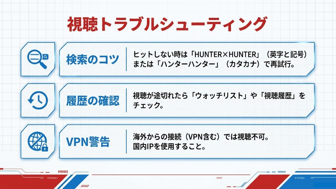 2025年の騒動を経て、私たちは「噂に振り回されないリテラシー」を身につける必要がありました。2026年1月現在、安定して『HUNTER×HUNTER』を視聴し続けるために、ユーザーが意識しておくべき具体的なチェックポイントは以下の3点です。