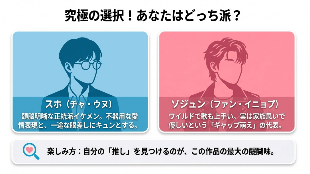 「スホとソジュン、どちらか一人なんて選べない!」というファンの悲鳴が、このドラマの熱狂ぶりを物語っていますね。